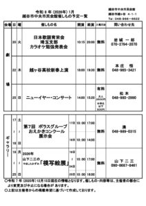 劇場・ギャラリー令和8年1月次一覧表 | 越谷市中央市民会館越谷市中央市民会館