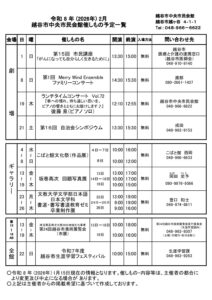 劇場・ギャラリー令和8年2月次一覧表 | 越谷市中央市民会館越谷市中央市民会館